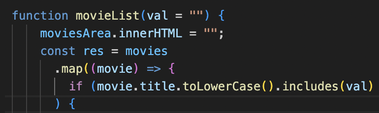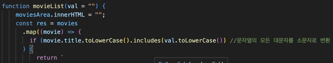 >>'movie' 객체의 'title' 속성 값을 toLowerCase를 주어 소문자로 변환하였으나