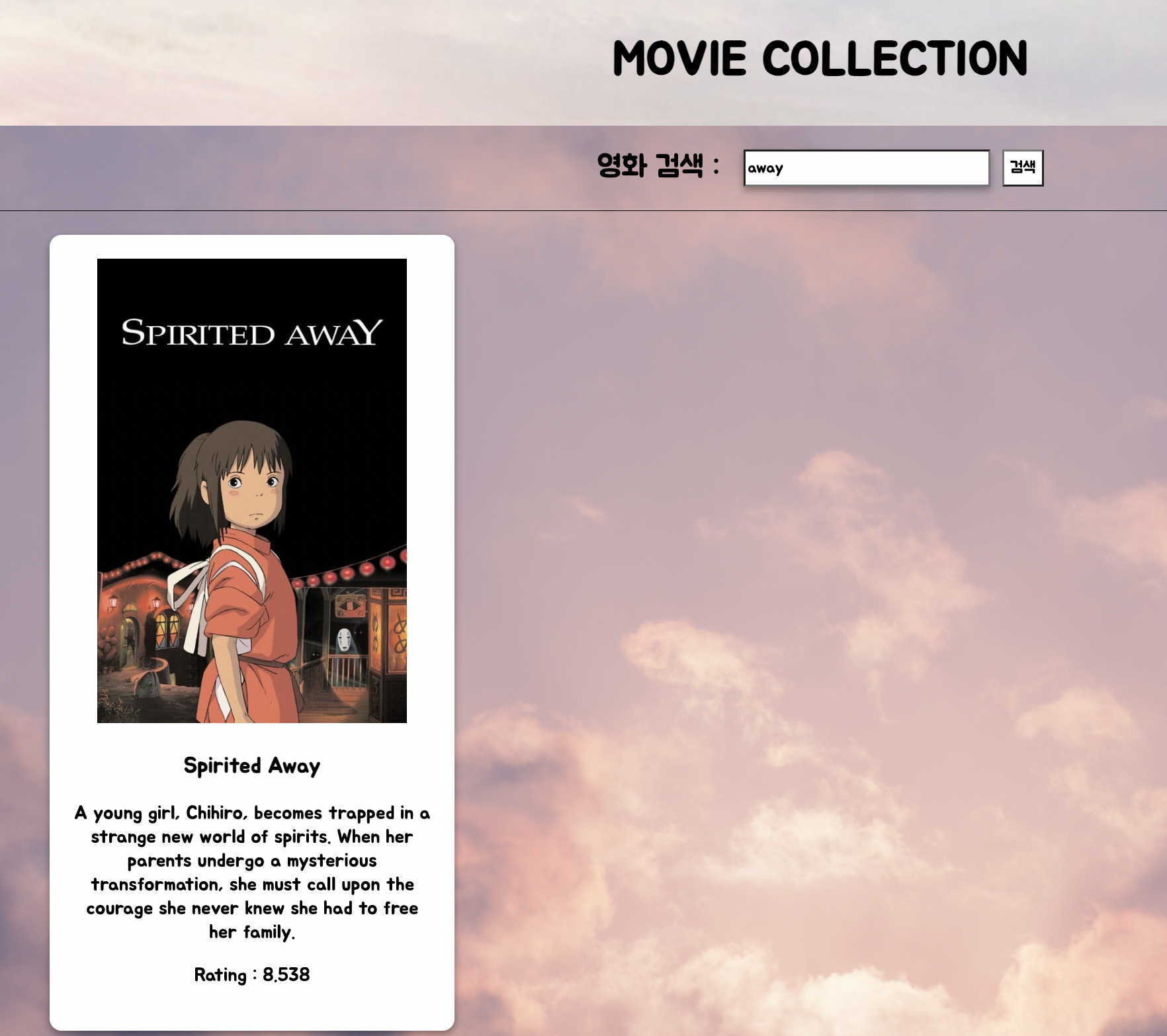 인기영화 API를 가져와서 검색하는 기능까지 구현을 하였으나