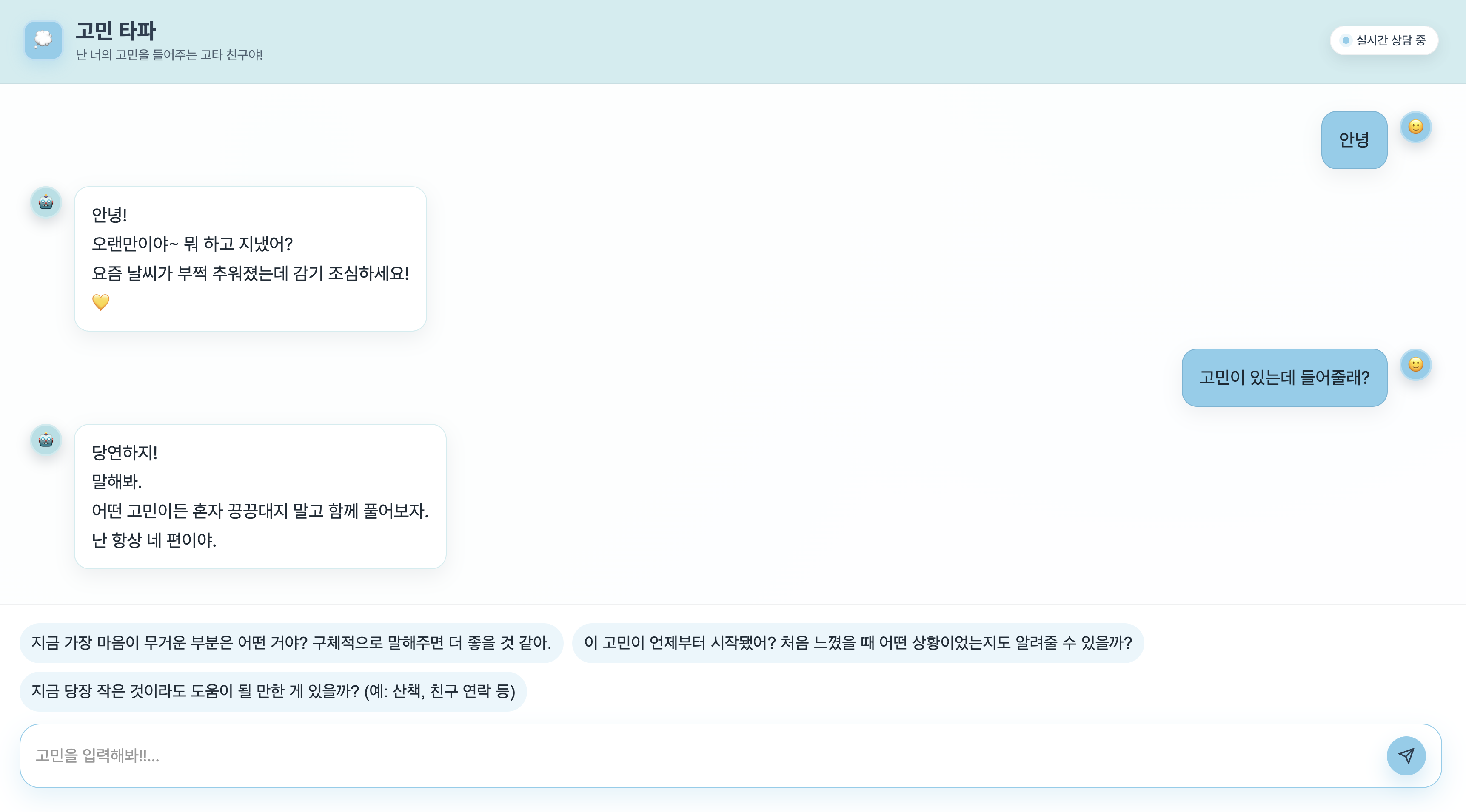 나는 고민을 들어주는 친구 컨셉으로 프로젝트를 만들었다