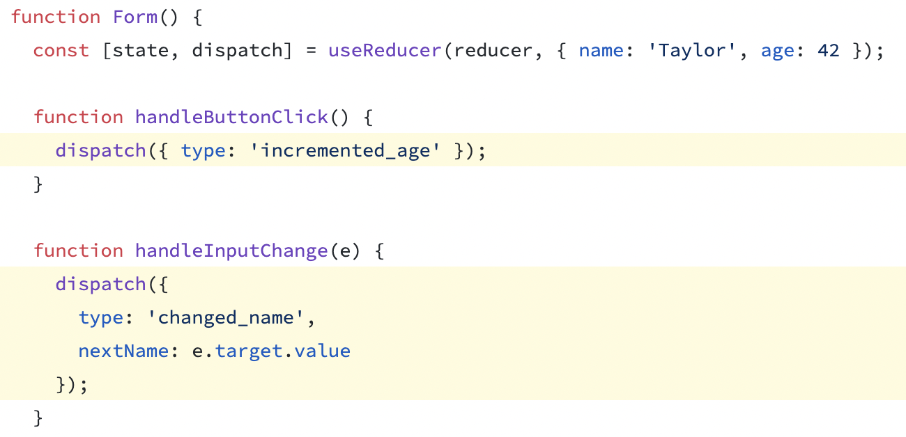 화면에 표시되는 내용을 업데이트 하려면 사용자가 수행한 작업을 나타내는 객체, 즉 액션을 사용하여 dispatch를 호출한다.